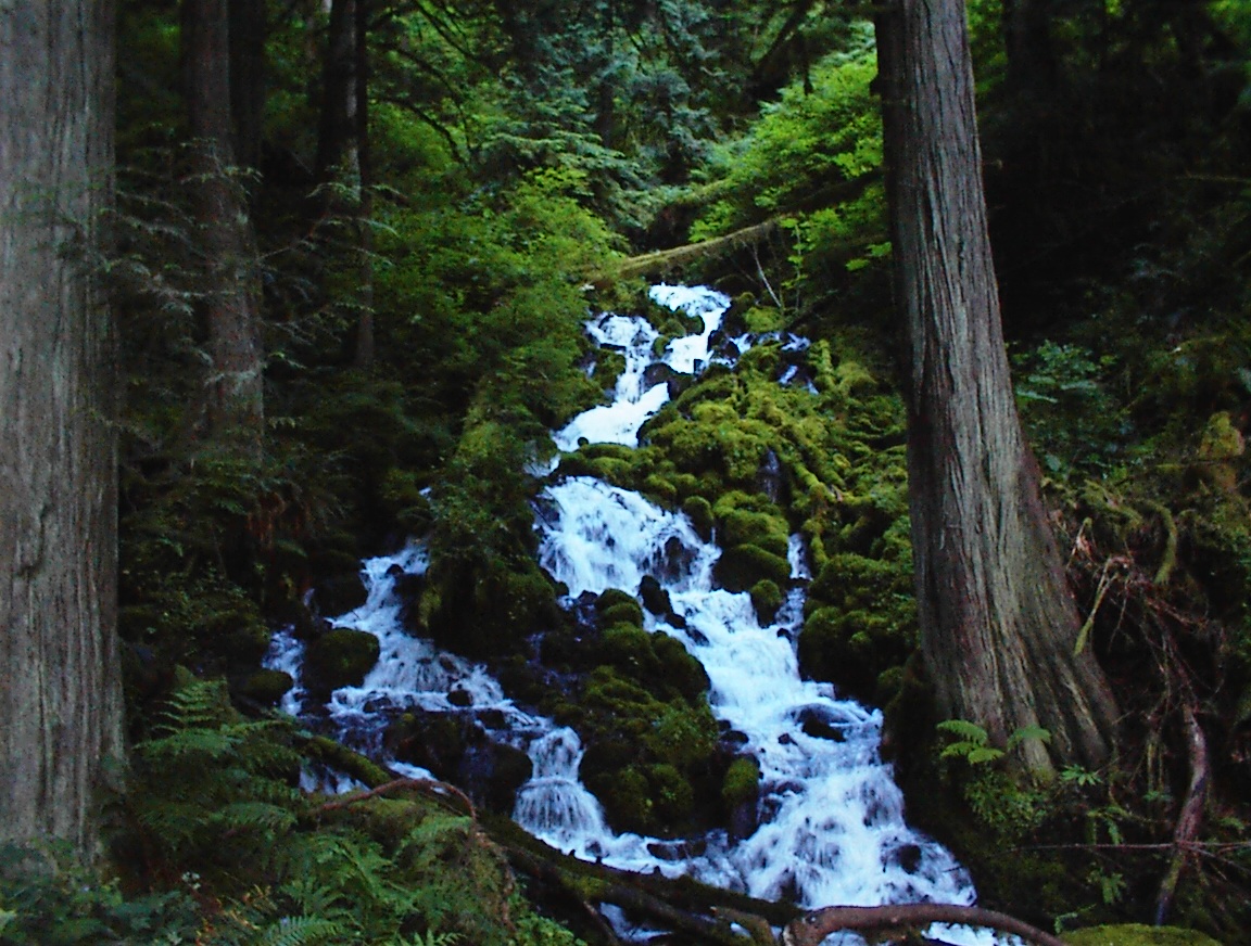 Moss covered rocks and logs along the stream feeding the Wahakeena falls.